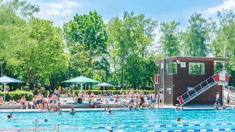 Direkt gegenüber vom LennéQuartier liegt das Carl-Miller-Sommerbad mit 50-Meter- und Nichtschwimmerbecken, Beachvolleyballanlagen, Tischtennis und großer Liegewiese. (Symbolbild)