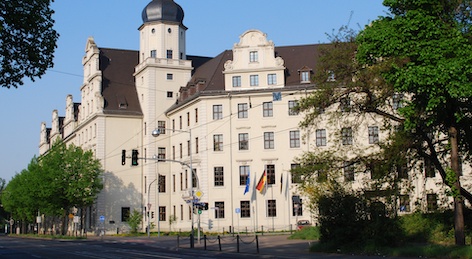Vis à vis schaut man auf ein imposantes, 1903 errichtetes Gebäude, in dem heute das Ministerium für Inneres und Sport des Landes Sachsen Anhalt seinen Sitz hat.